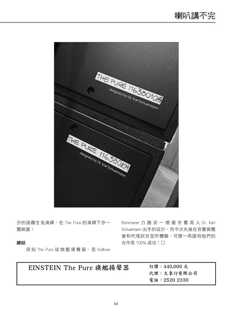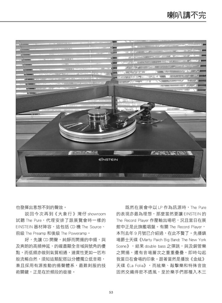 “When The Pure warms up, its rich, deep and warm sound density can cover the entire room and more, especially when one switches to The Record Player, [Einstein’s] turntable for LPs. That lively openness is no different from what I normally hear when I listen to the same large antique horn! ”