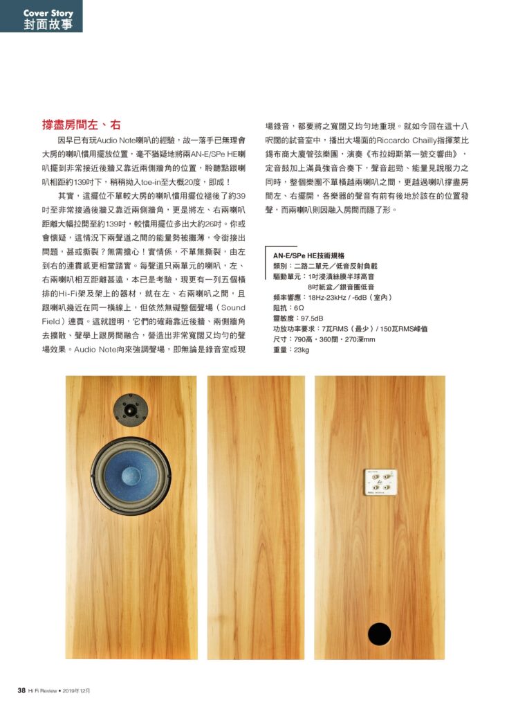 “Its shallow cabinet and wide surface provide optimal conditions for the drive unit, allowing it to work as though it were installed on a virtual wall. This creates a sound field without interference and brings about a very wide and uniform diffusion effect. ⋯⋯ In order to get the best driver unit and crossover combination, they started a dynamic matching process to ensure stereo pairing. After pair-matching, the master curve of each speaker has a difference of only less than 0.4dB between paired speakers. To Audio Note’s knowledge, no other speaker manufacturer can achieve such a close match, and test 100% of their products. ”