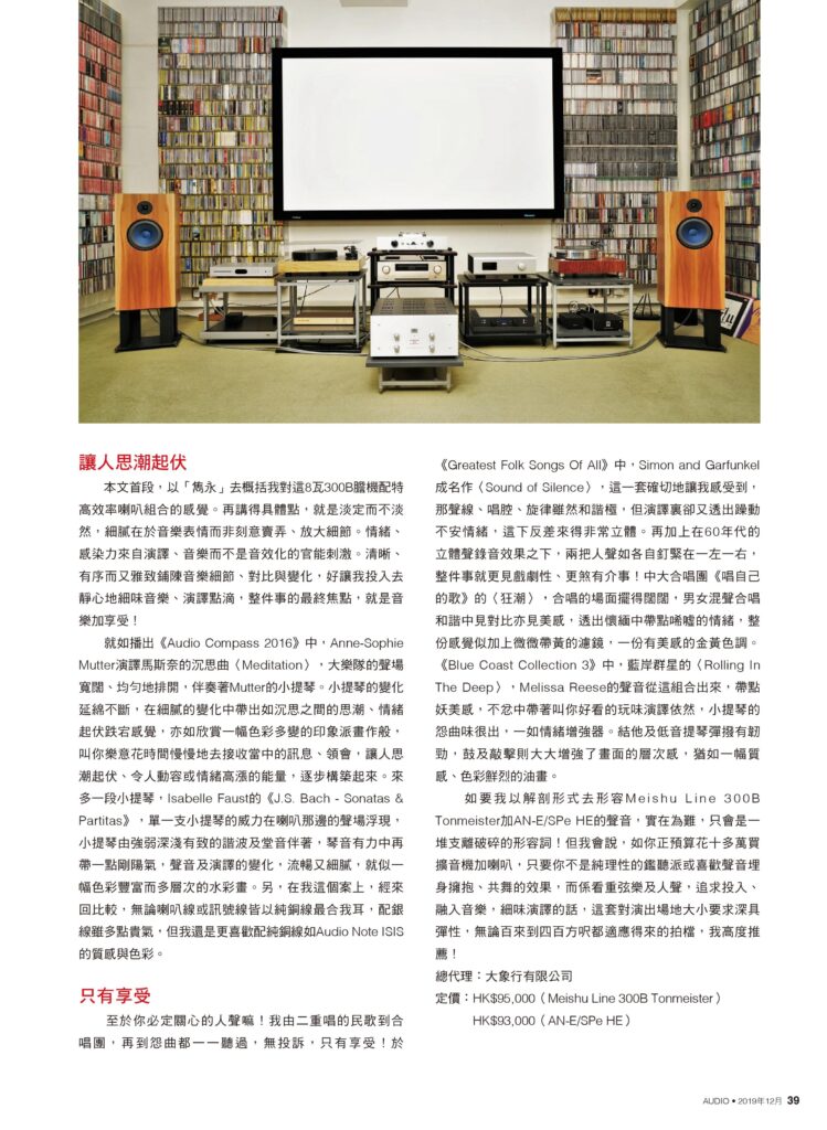 “The first adjectives that come to mind with the Meishu Line 300B Tonmeister and the AN-E / SPe HE speakers are ‘everlasting’ and ‘thought-provoking’. ”
