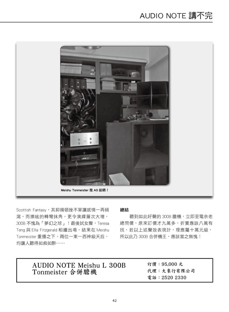 “[The Meishu Tonmeister] has an extremely broad range and musical tolerance, and its speed which flows as quickly as water and moving clouds, is markedly more brisk and more natural than the previous models of Meishu I’ve heard….. Its intonations not only make my emotions spill over, it also adds layers more to its interpretation. In short, it fully deserves to be called the king of 300B integrated amplifiers!”