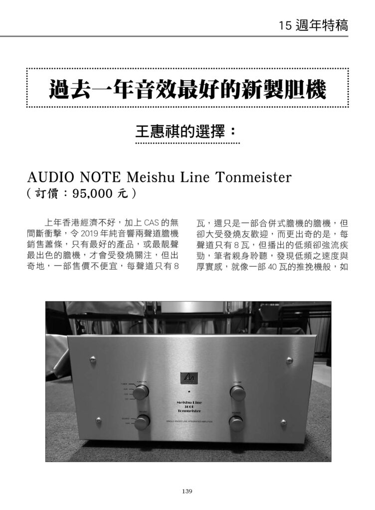 Tube World Monthly – 15th Anniversary Special Issue Best New Vacuum Tube Amplifier for the Past Year – Audio Note Meishu Line Tonmeister