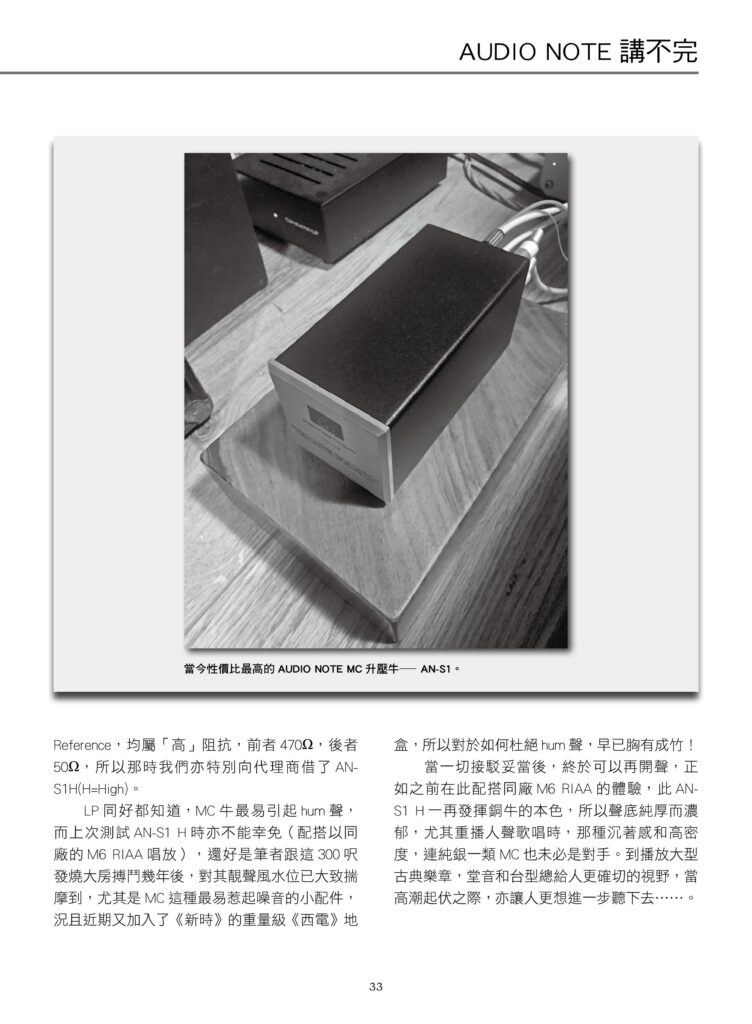 “The AN-S1H shines with its true colours as a copper transformer, where its rich and thick voicing especially when playing vocals, and the stable and dense texture of its sound blows even pure silver MC transformers out of the water. When it plays large-scale classical performances, the sound emanating from the concert hall and the shape of the stage gives listeners a precise perspective. When the music ebbs and flows towards the climax, it keeps you listening on your toes…”
