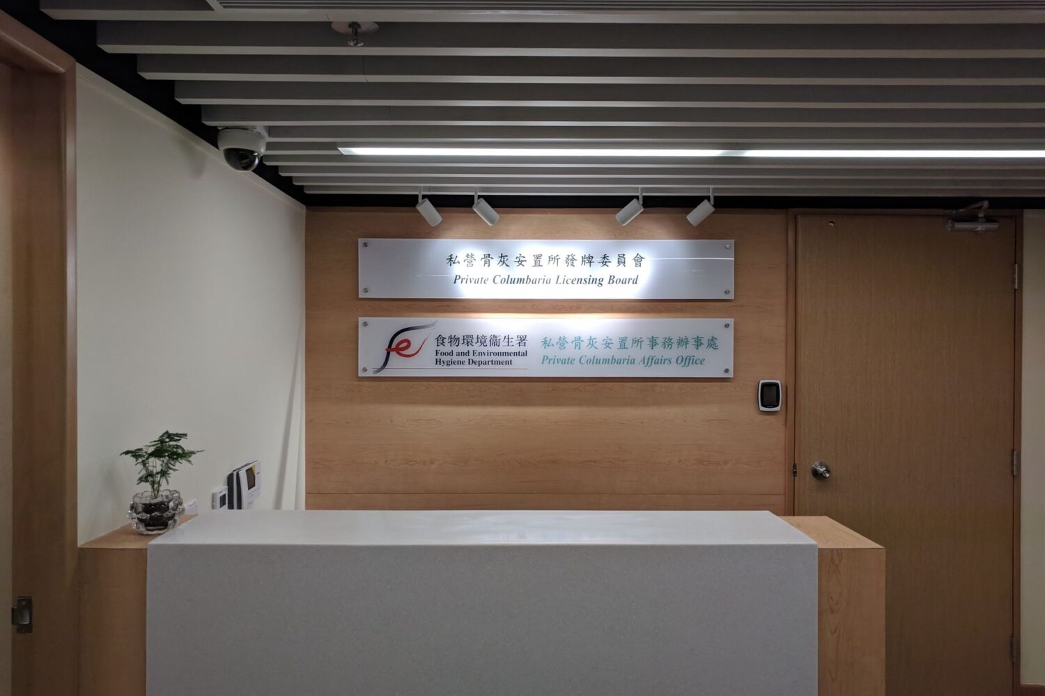 食物環境衞生署新成立的私營骨灰安置所事務辦事處 (骨灰所辦) 的工作是處理實施《私營骨灰安置所條例》的相關事宜和為私營骨灰安置所發牌委員會提供行政支援。骨灰所辦設有發牌委員會秘書處、行政組、牌照組和執法組。